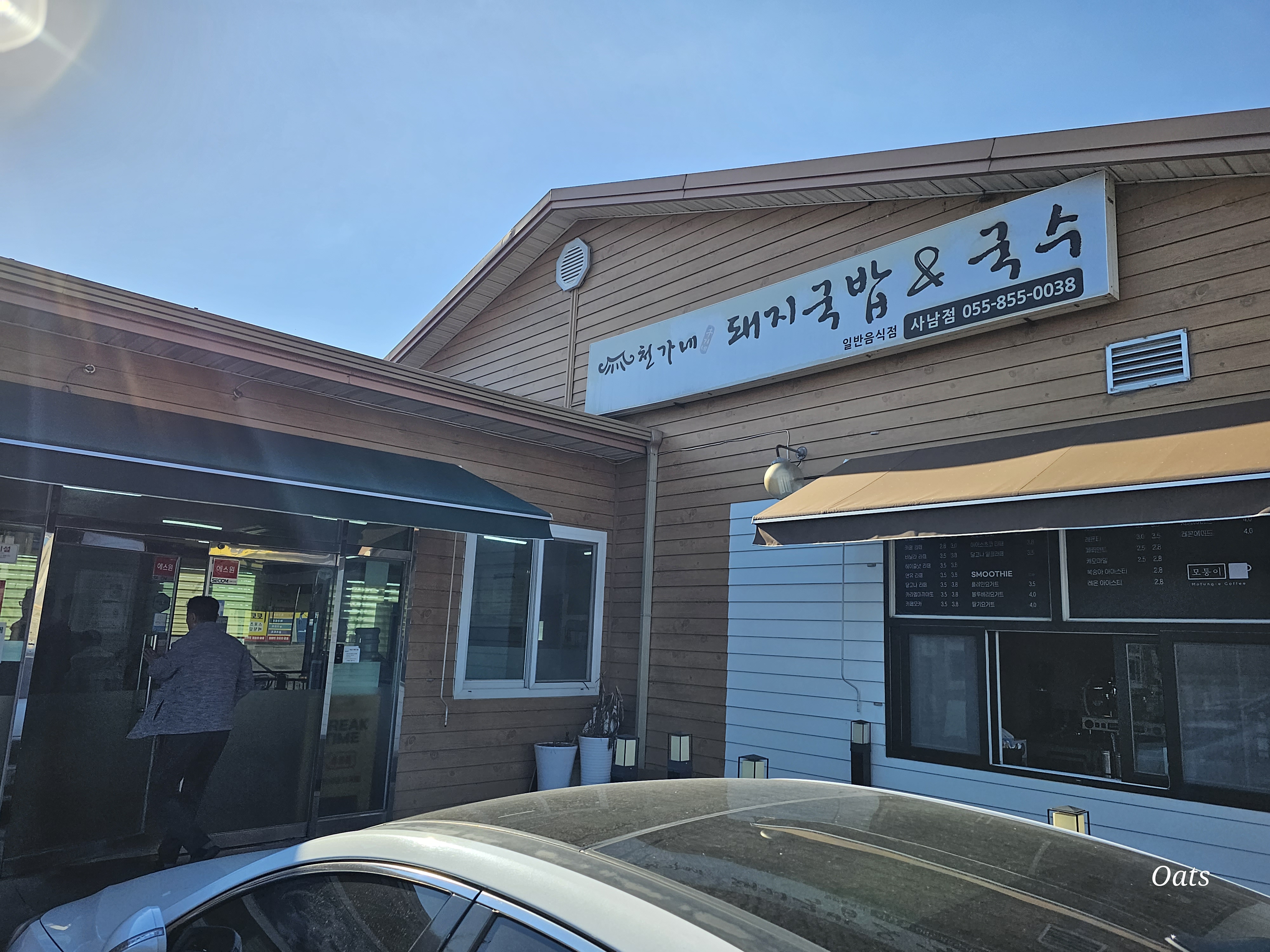 근처 자동화 기기 설치가 있어 설치중 점심시간이 되어서 오게된 국밥집이다. 경상남도 사천시 사남면 월성리 271-7 10:00 ~ 22:00 055-855-0038 입구 들어가면 오른쪽은 테이블 좌측은 앉아서 먹을수 있는 좌식으로 나눠져 있다. 기본적인 메뉴판.. 예전엔 그냥 돼지국밥을 먹었으나 최근 내장 국밥이 좋아 내장 국밥을 주문함. 주문 후 잠시 기다리면 나오는 기본 메뉴. 언제나 똑같음 깍두기랑 김치가 상큼한게 먹기가 좋다. 여기는 내장국밥. 어~~~ 느 집이나 거의 같은 국밥이다. 이집은 다른 국밥집이랑 다른점은 마늘 다대기가 있다. 국밥 그냥 새우젖만 넣어서 먹으면 약간 심심한 맛인데 이집은 마늘 다대기를 꼭 넣어 먹어야 함. 마늘 다대기를 넣으면 국밥에 마늘 향이 나서 이상할꺼 같지만.. ..