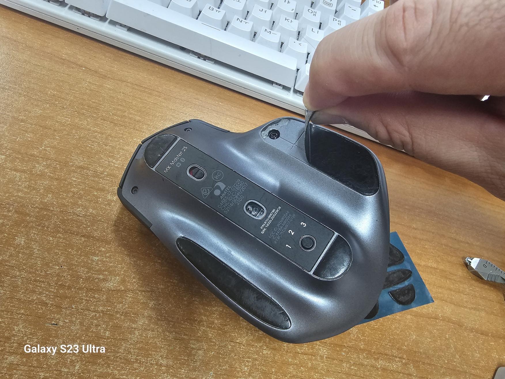 마우스 피트 교체 후 보호 비닐도 벗겨 냅니다.