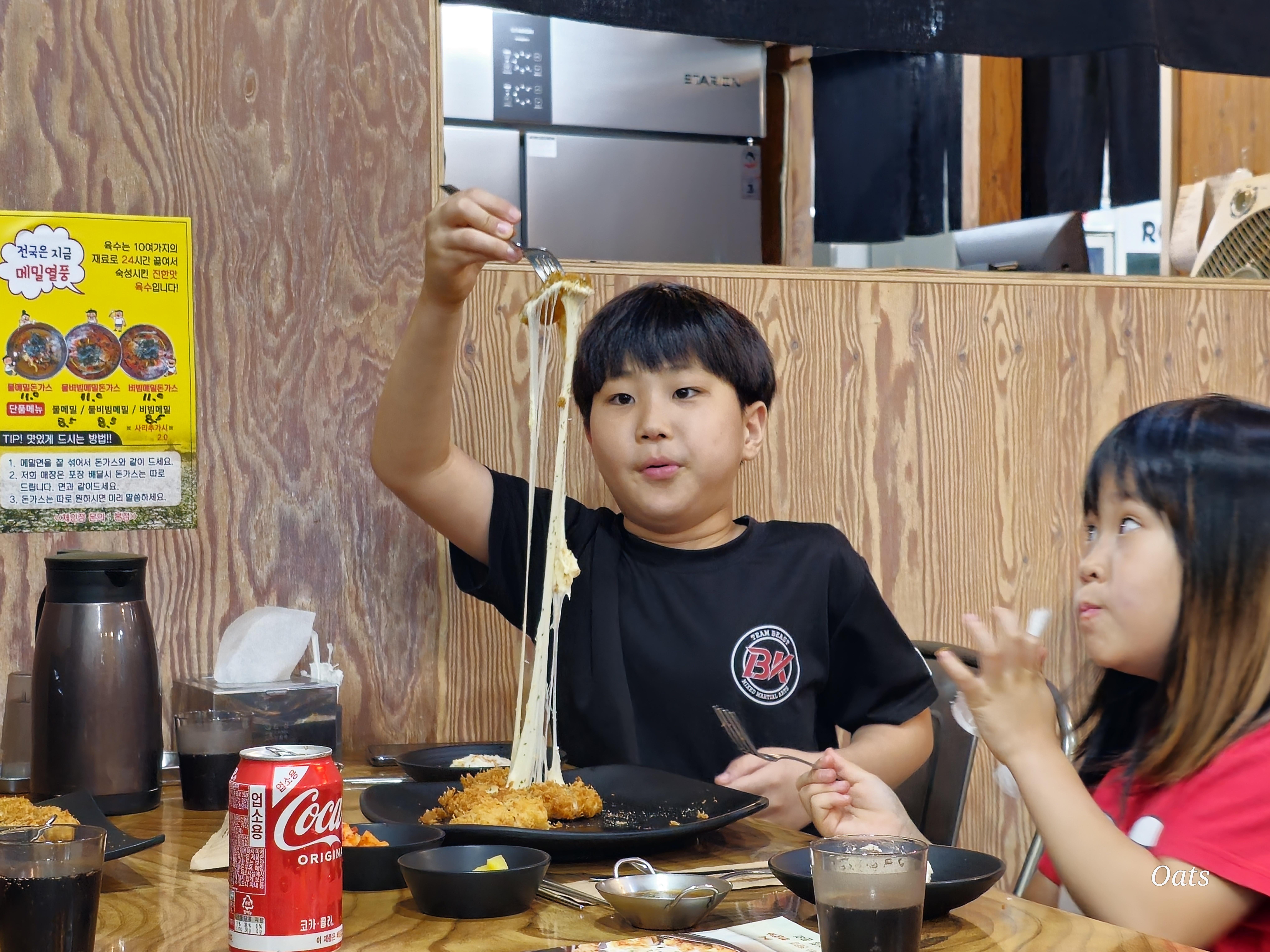 둘째 셋째가 잘 못먹어서 곱배기 시켜서 둘이 나눠 먹게 함.