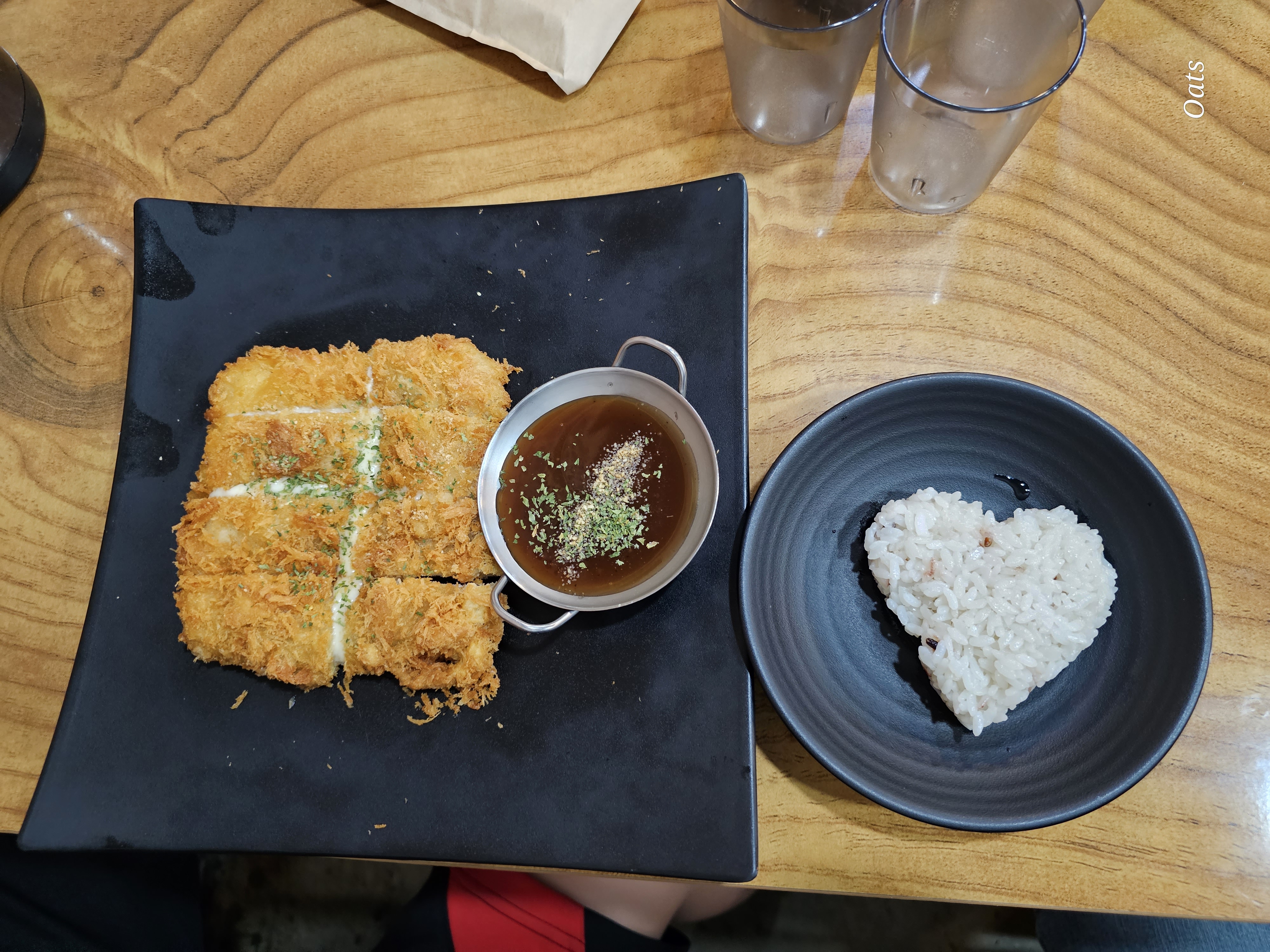 치즈 돈까쓰는 애써 늘려서 먹어야 된다면서 저리 해서 먹음.