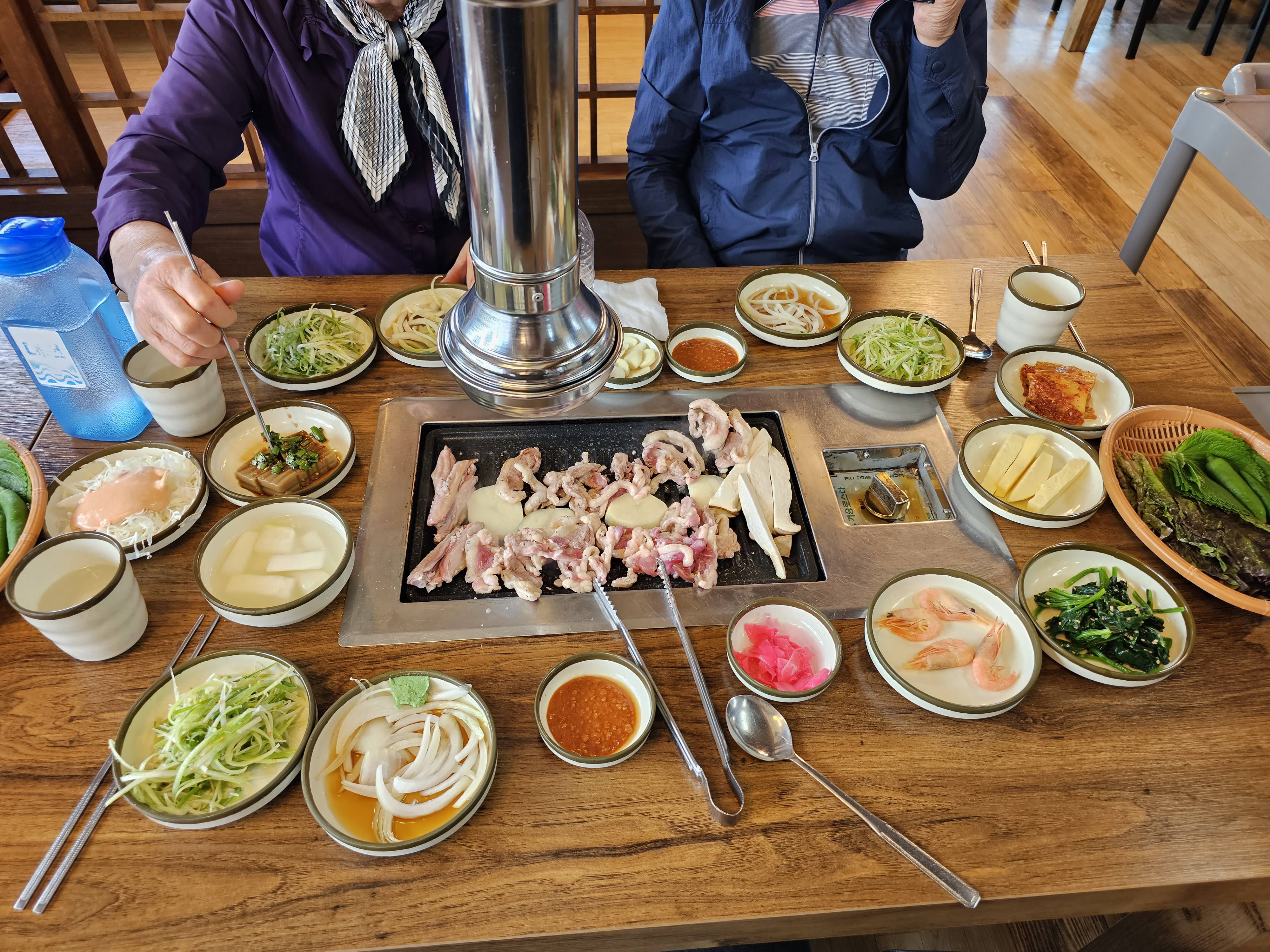 오리 굽는동안 주변 반찬들이 나오는데 한상 가득!