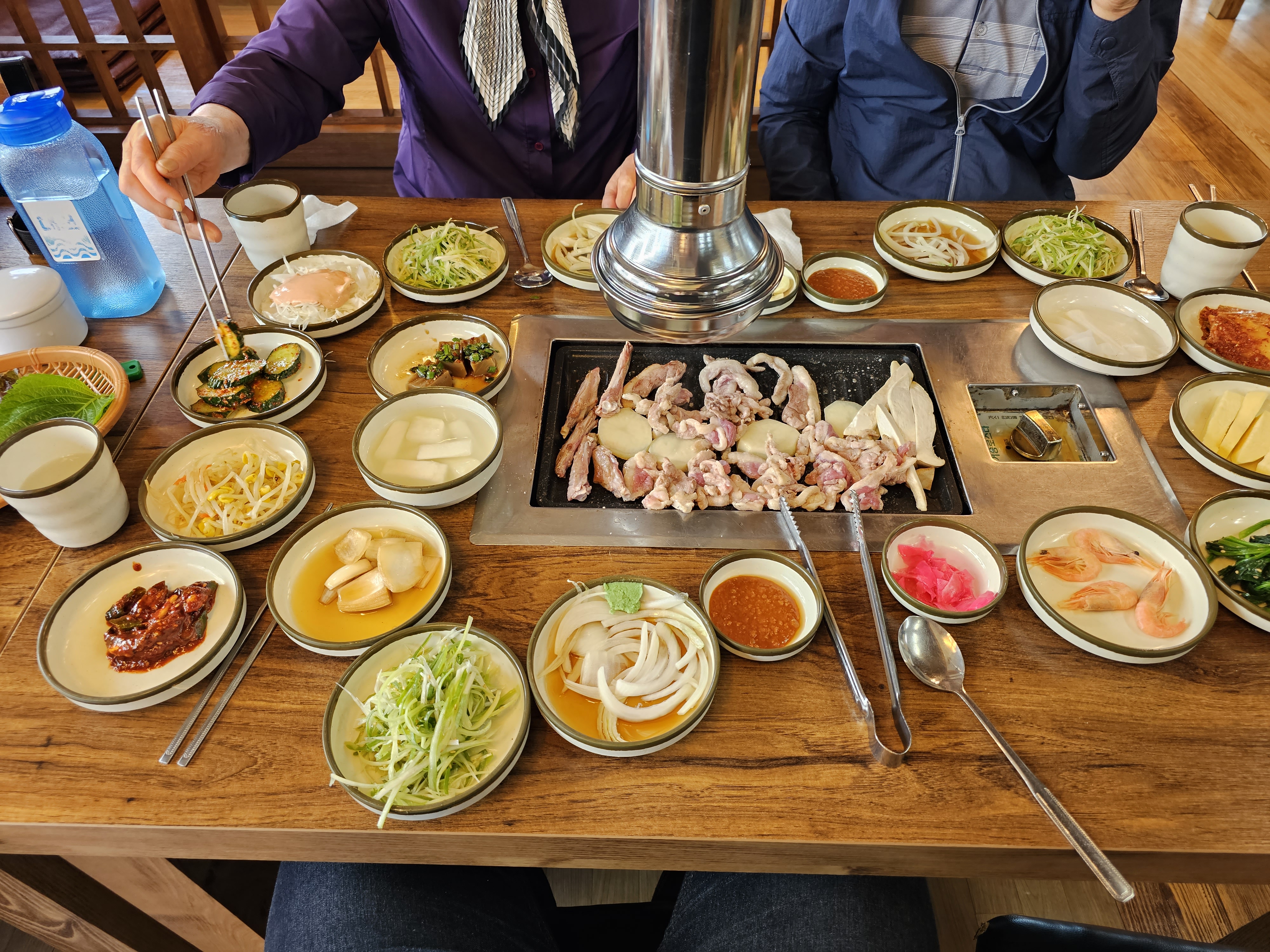 오리 굽는동안 주변 반찬들이 나오는데 한상 가득!