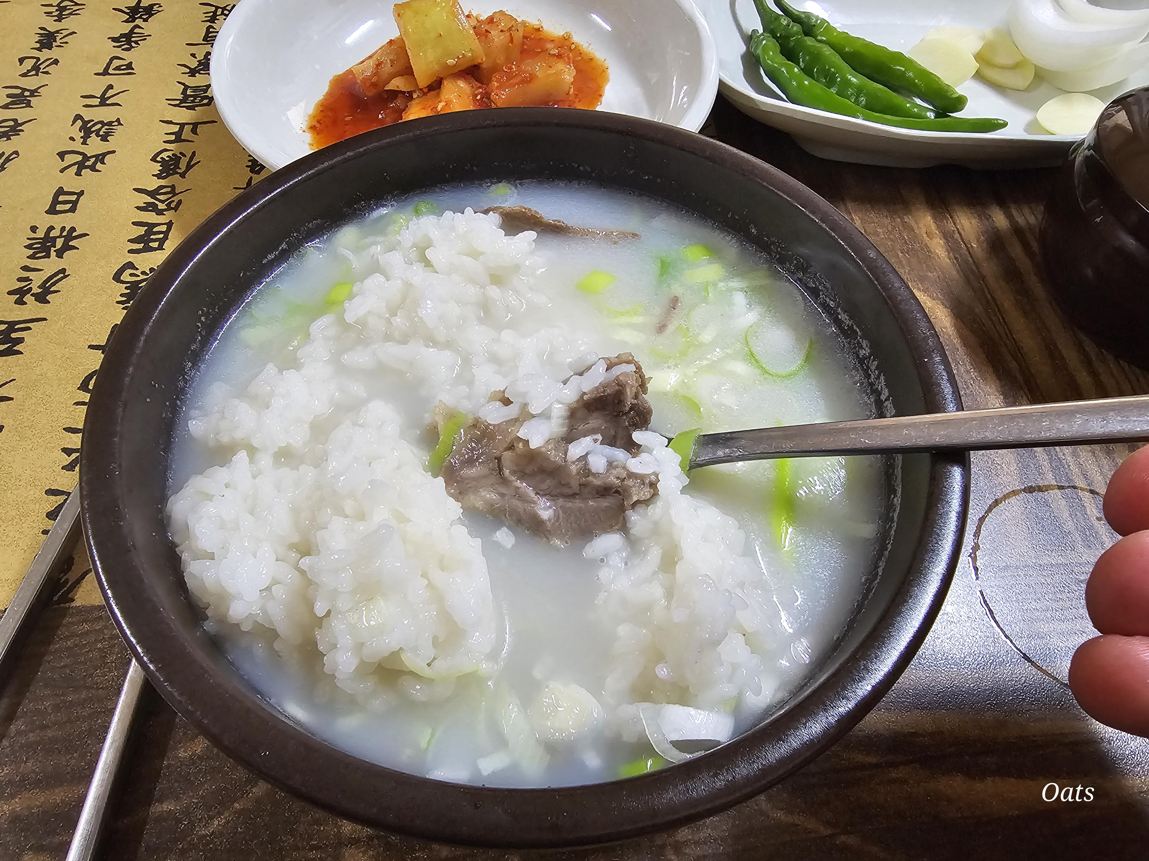 돼지국밥처럼 입에 달라 붙는 그런거 없이 매우 깔끔함 소 잡내도 없이 좋음. 강추