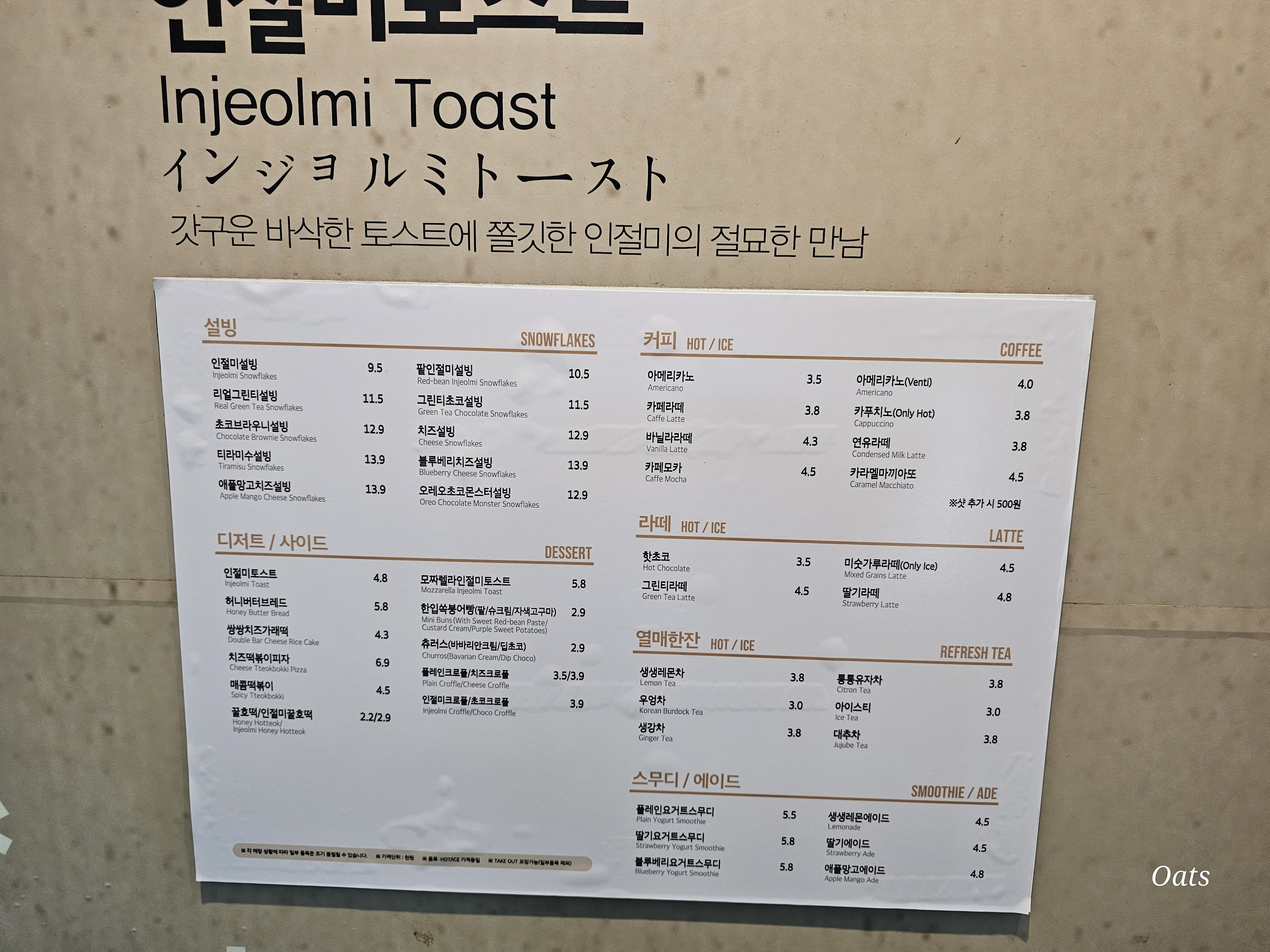 인절미 아이스크림과 샤인머스켓 메론 설빙을 주문함