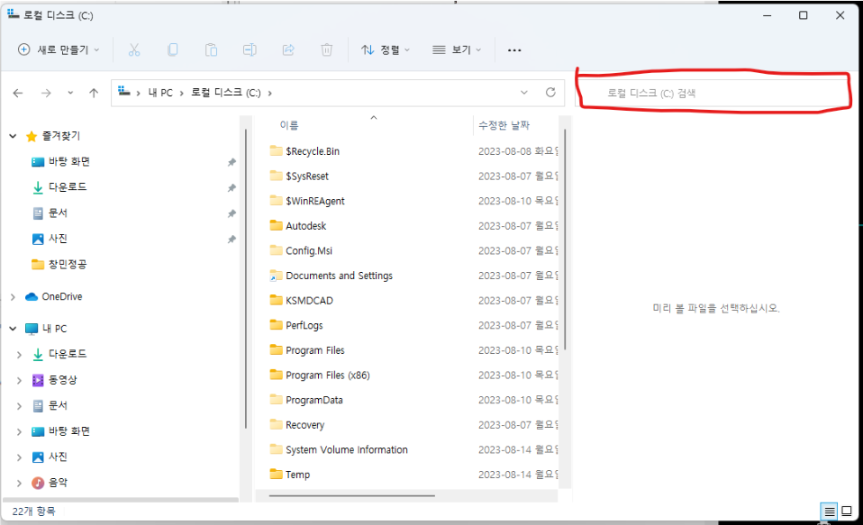 기본적인 윈도우 탐색기 우측 상단을 보면 검색하는 부분이 있는데..