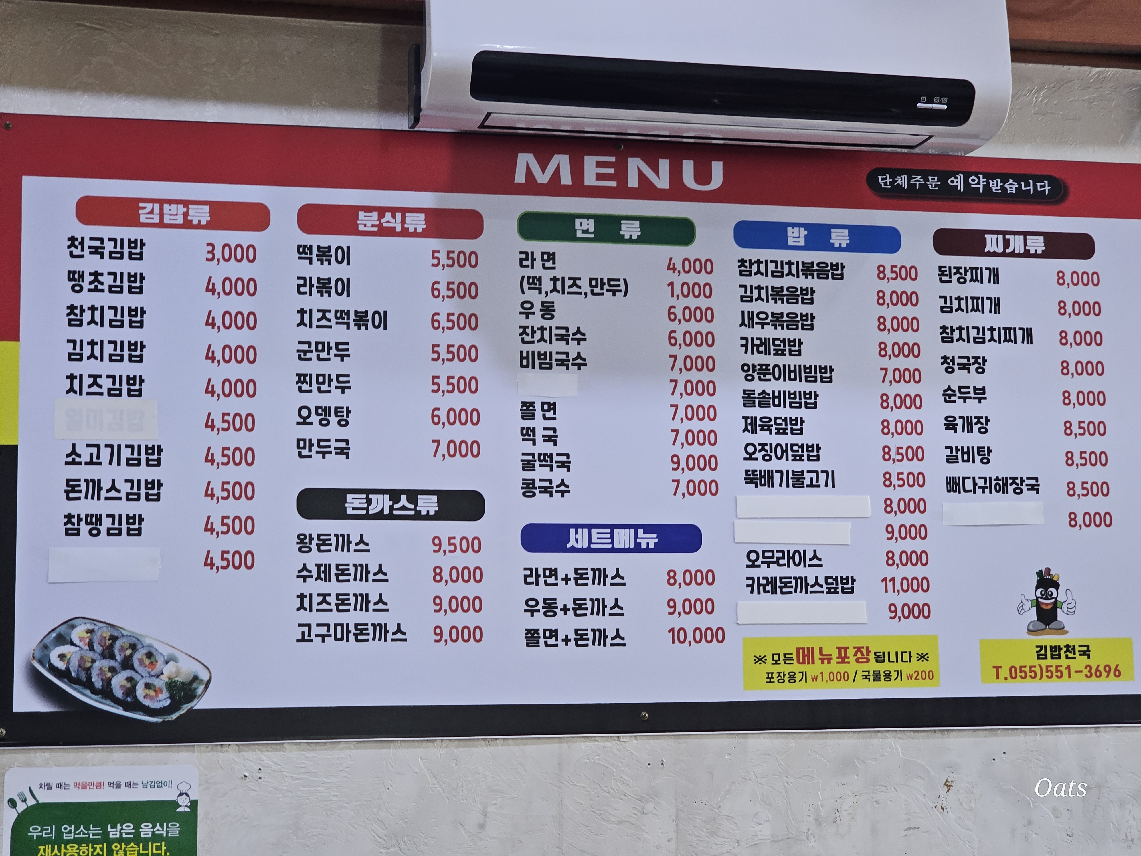 메뉴는 다들 알다시피 여러.. 김밥 및 여러 음식들이 있음.