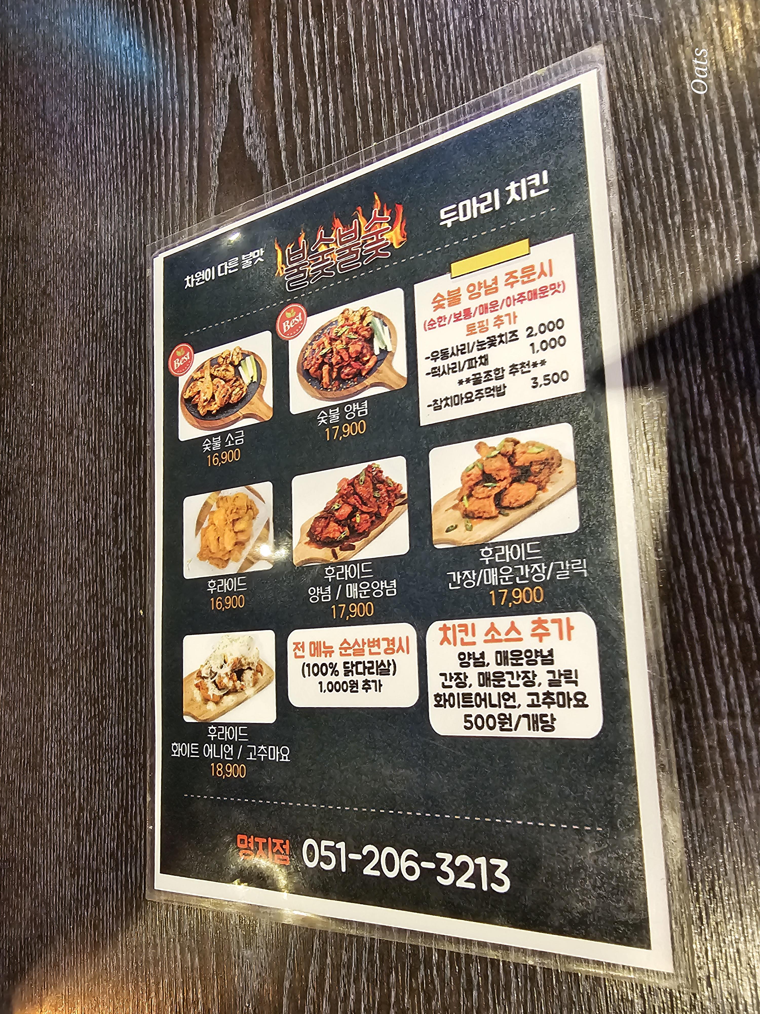본가에 왔는데 저녁에 미묘하게 배가 고파 튀긴 치킨을 먹을까 하다가 양심상 튀기진 않고 구은 치킨을 먹기위해 검색을 해보니 근처에 보인 불숯불숯 두마리 치킨집.