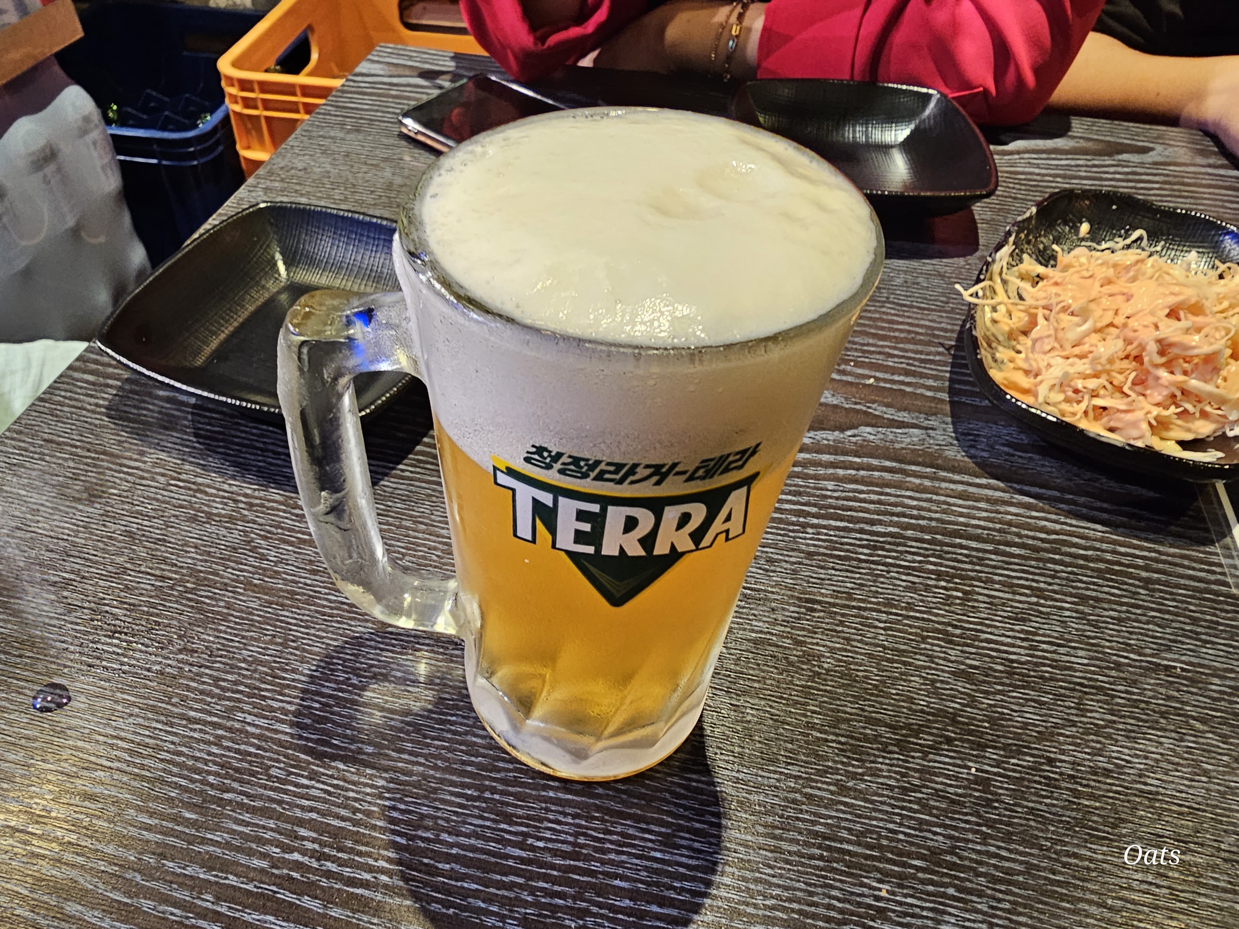 생맥 통 보니 거의 끝물이라서 나오다 말다 해서 그런듯 합니다. 죄송합니다. 하면서 새로 한잔 더 주셨음.. wow~!
