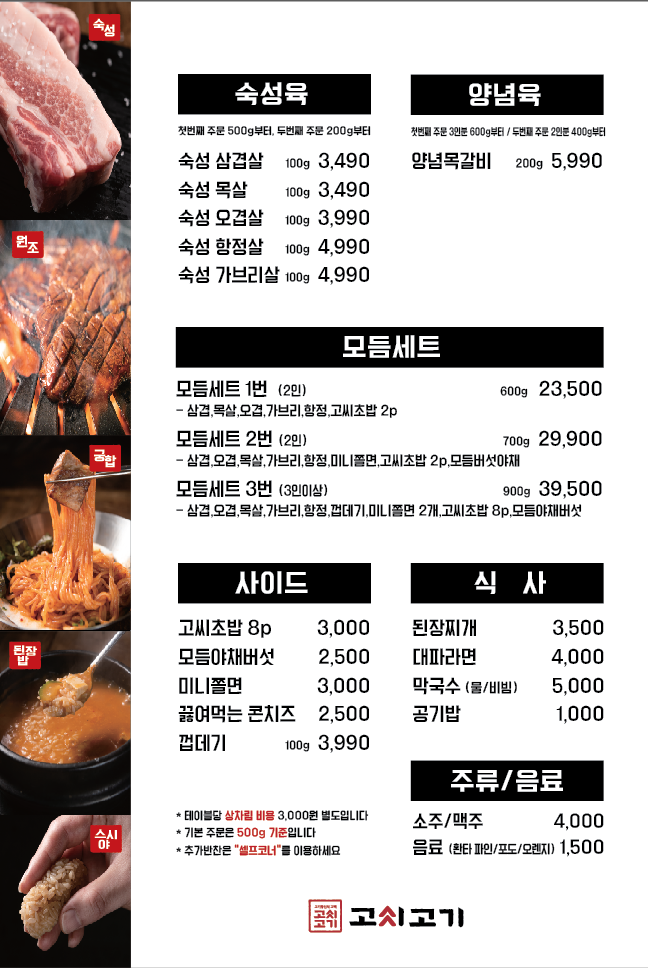 기본 메뉴판 초반 한참 다닐때 이것저것 시켜 먹어 봤으나 종류별로 이것저것 시켜 먹었으나 먹다보니 기본 숙성 삼겹살이 제일 괜찮았음.. 그래서 숙삼 주문함.