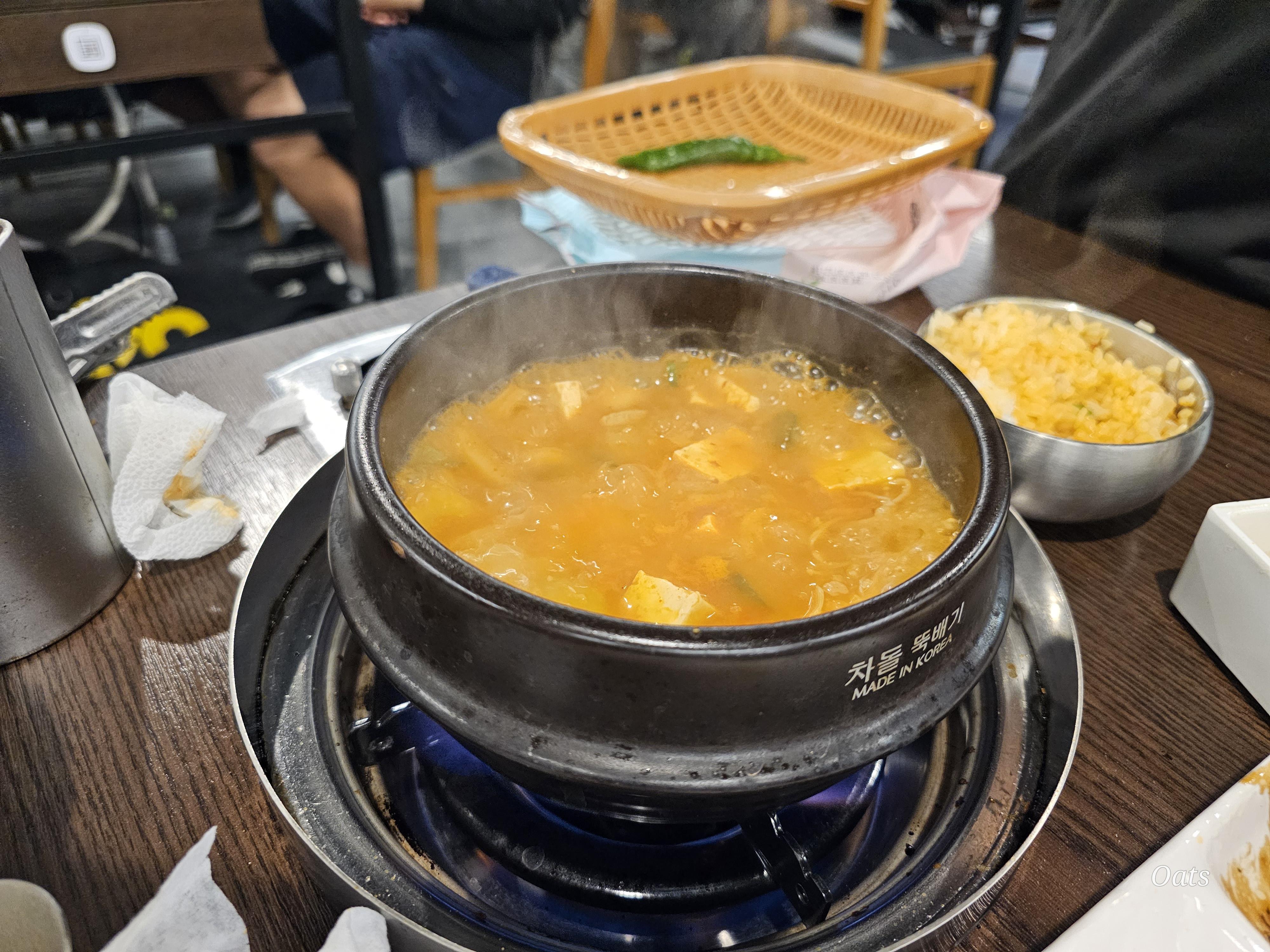 메뉴에 보면 라면 및 쫄면 등등 많이 있으나.. 된장찌개가 제일 맛나다. 배부르게 고기를 먹고 된장찌개를 먹어도 맛있게 먹을수 있다.