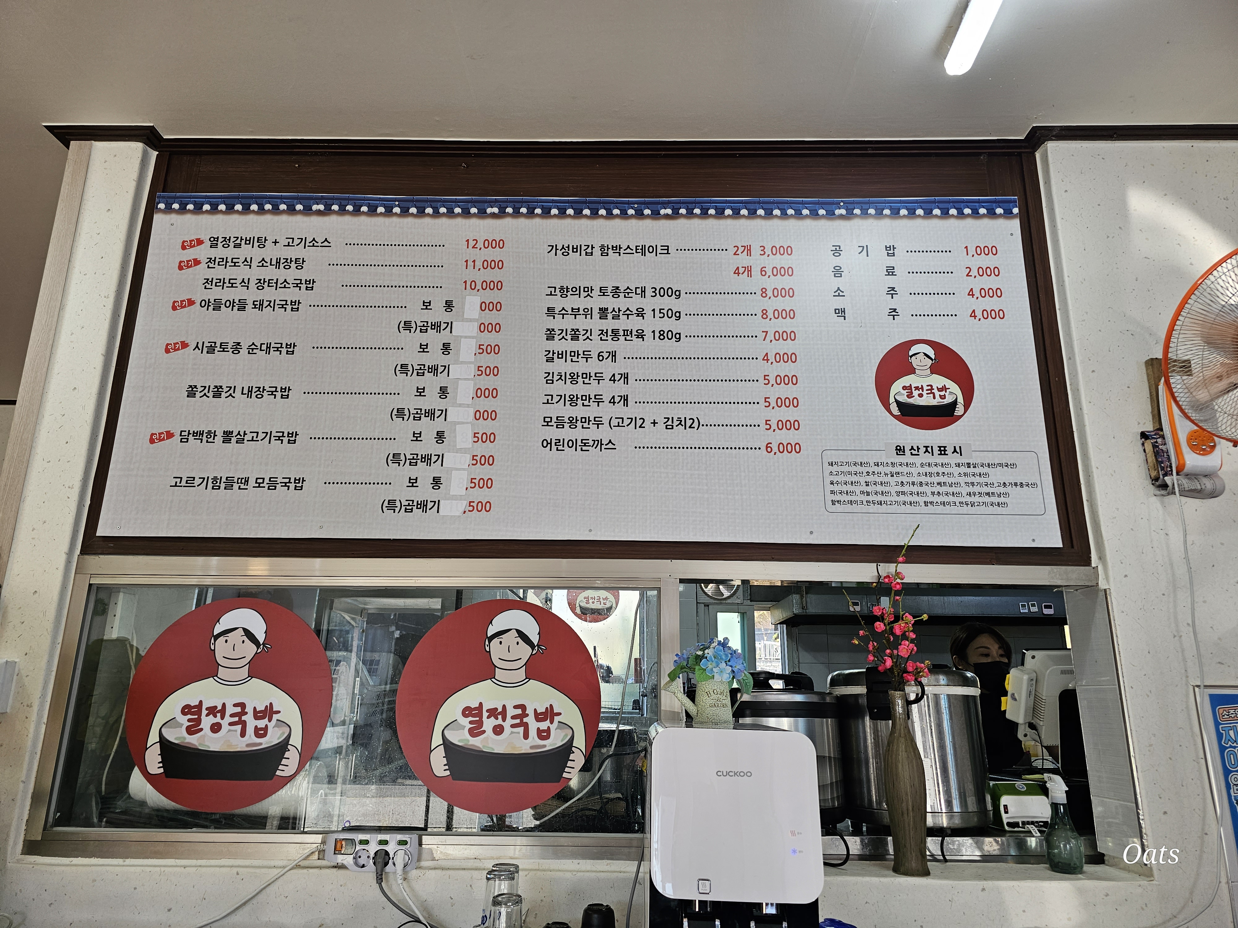 메뉴는 머 다 지워지고 위에 세개 뿐인듯 하나.. 배달의 민x 어플에 들어가보면 저 품목 말고도 상당히 많다.. 매장 내에서는 기본적으로 저것만 팔고 배달위주로 많이 하시는듯 하다.