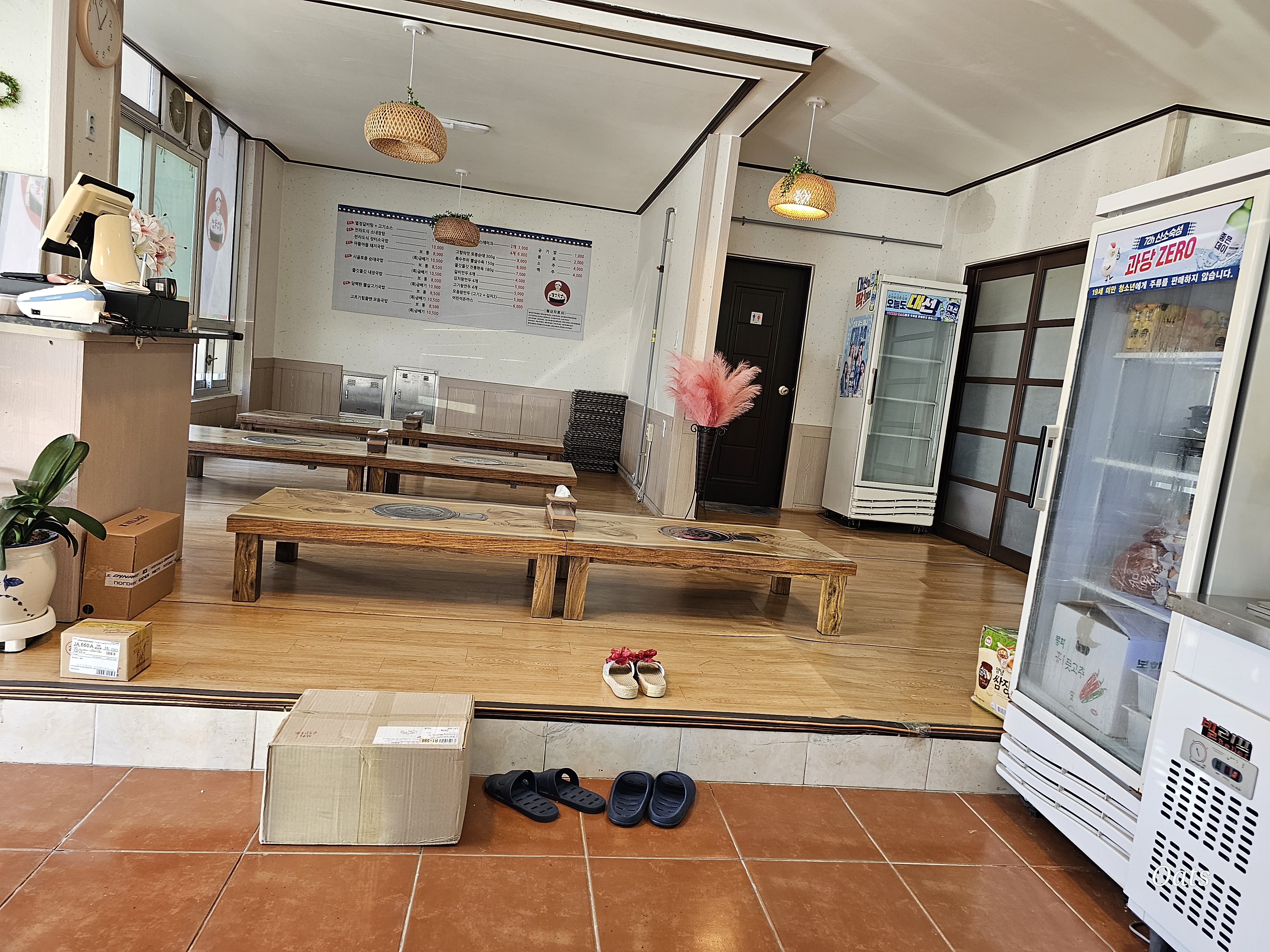 정문으로 들어와 보면 우측은 위에 테이블식 좌측은 앉아서 먹을수 있게 되어있다.