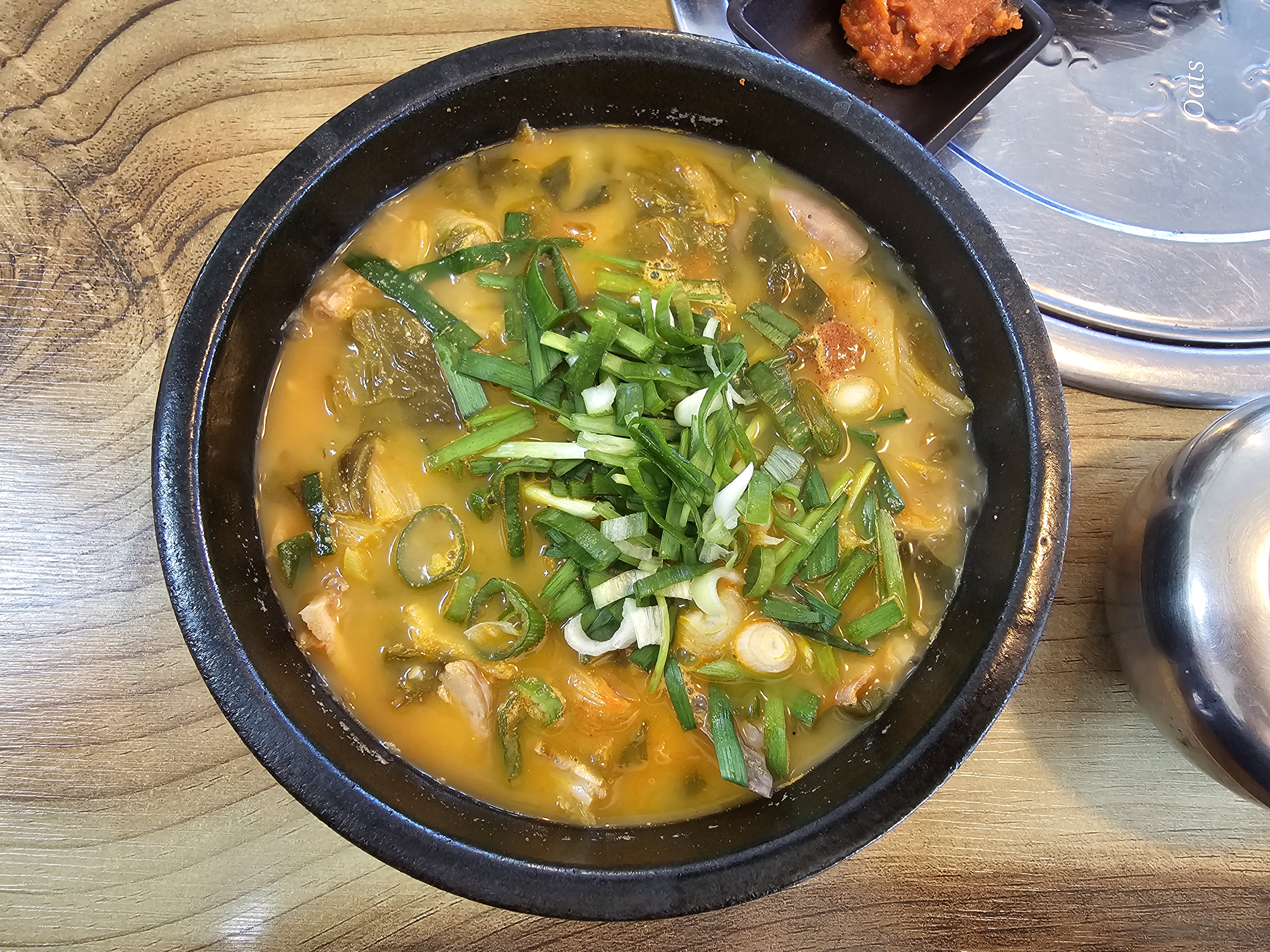테이블에 들깨랑 새우 젓깔이 있는데 안넣어 먹어도 될만큼 짠편이다... 계속 먹어도 라면국물 맛이다.