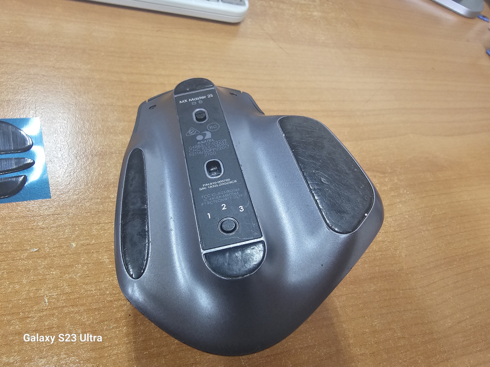 마우스 바닥 피트를 보면 오래 사용하여 스크레치가 많이 있습니다.