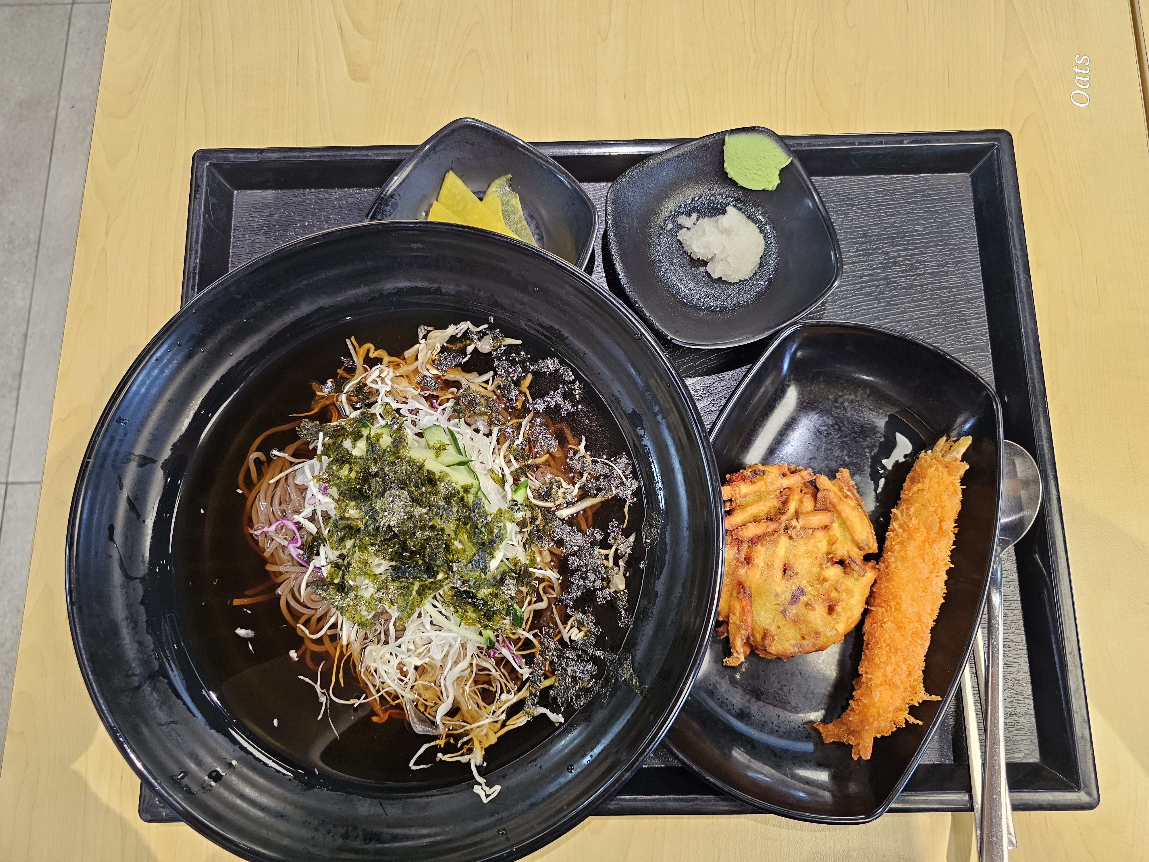 냉모밀 맛은 맛있으나 시원함이 부족함. 튀김류는 바삭해서 맛이 좋게 느껴짐.