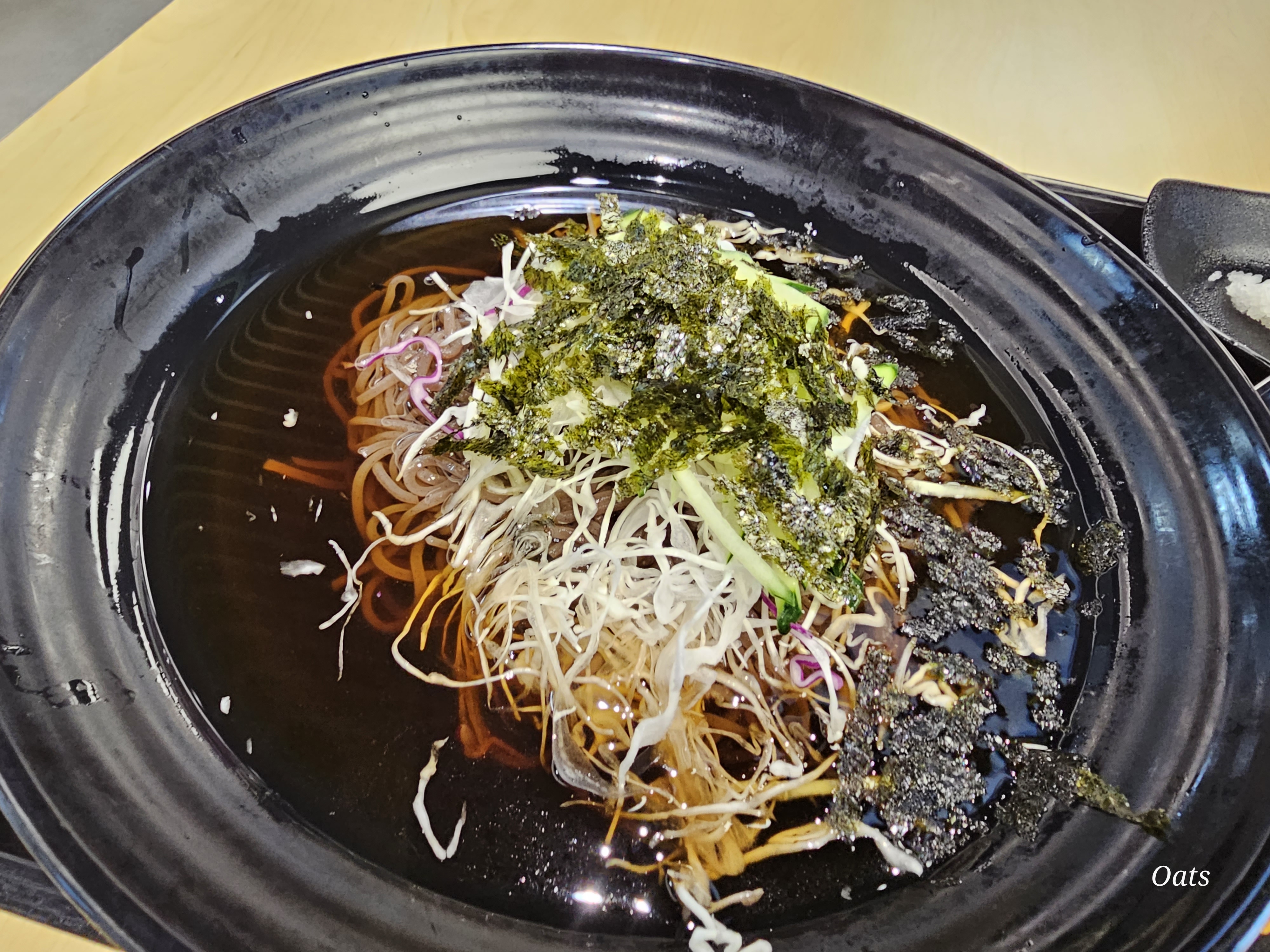 냉모밀은 다 아는 그 맛이긴 한데 조금 아쉬운점이라고 하면, 다른곳에는 살짝 살얼음이 띄어져 있어 매우 시원함이 있는데 여기는 그 시원함이 조금 부족함.