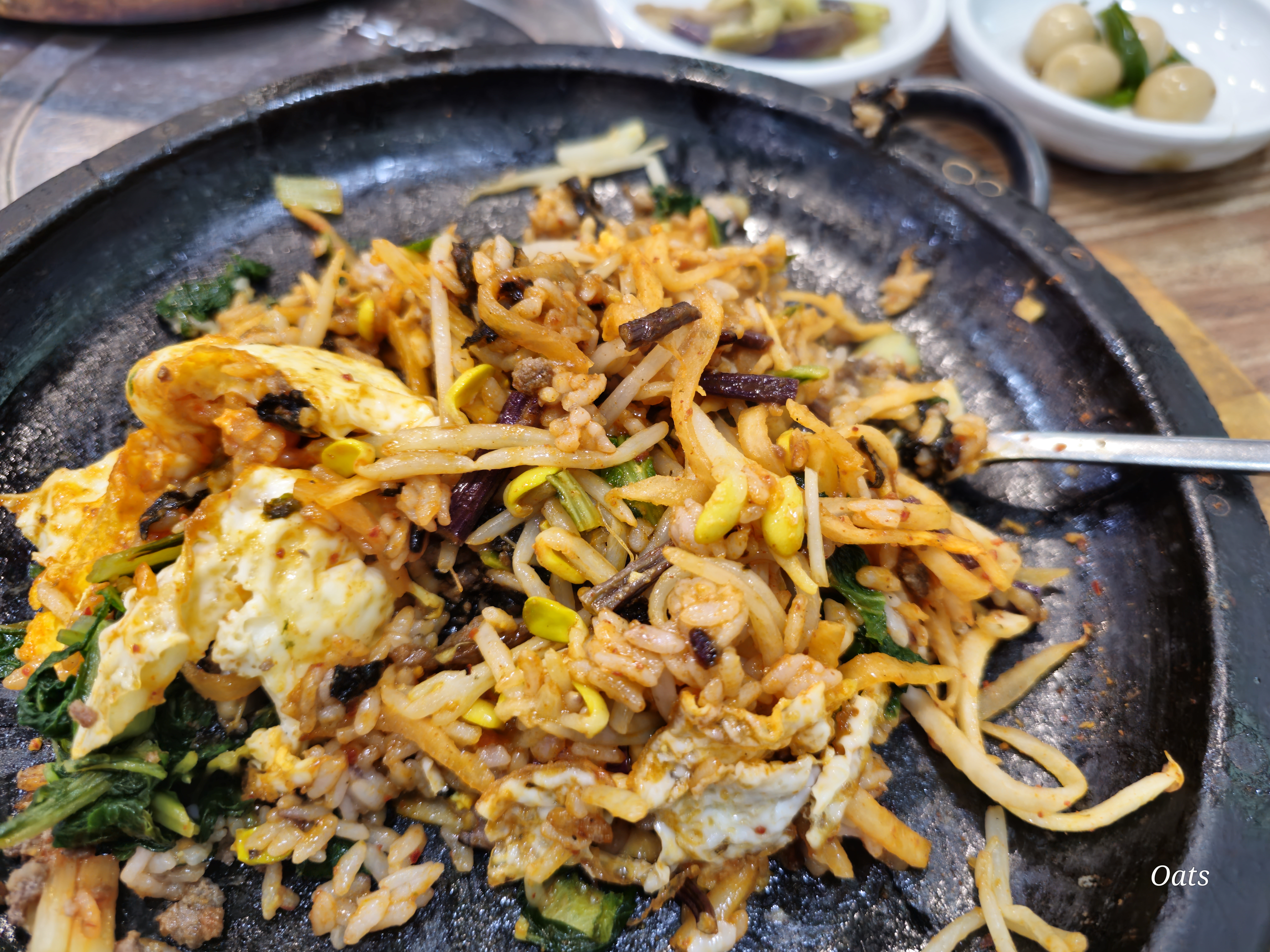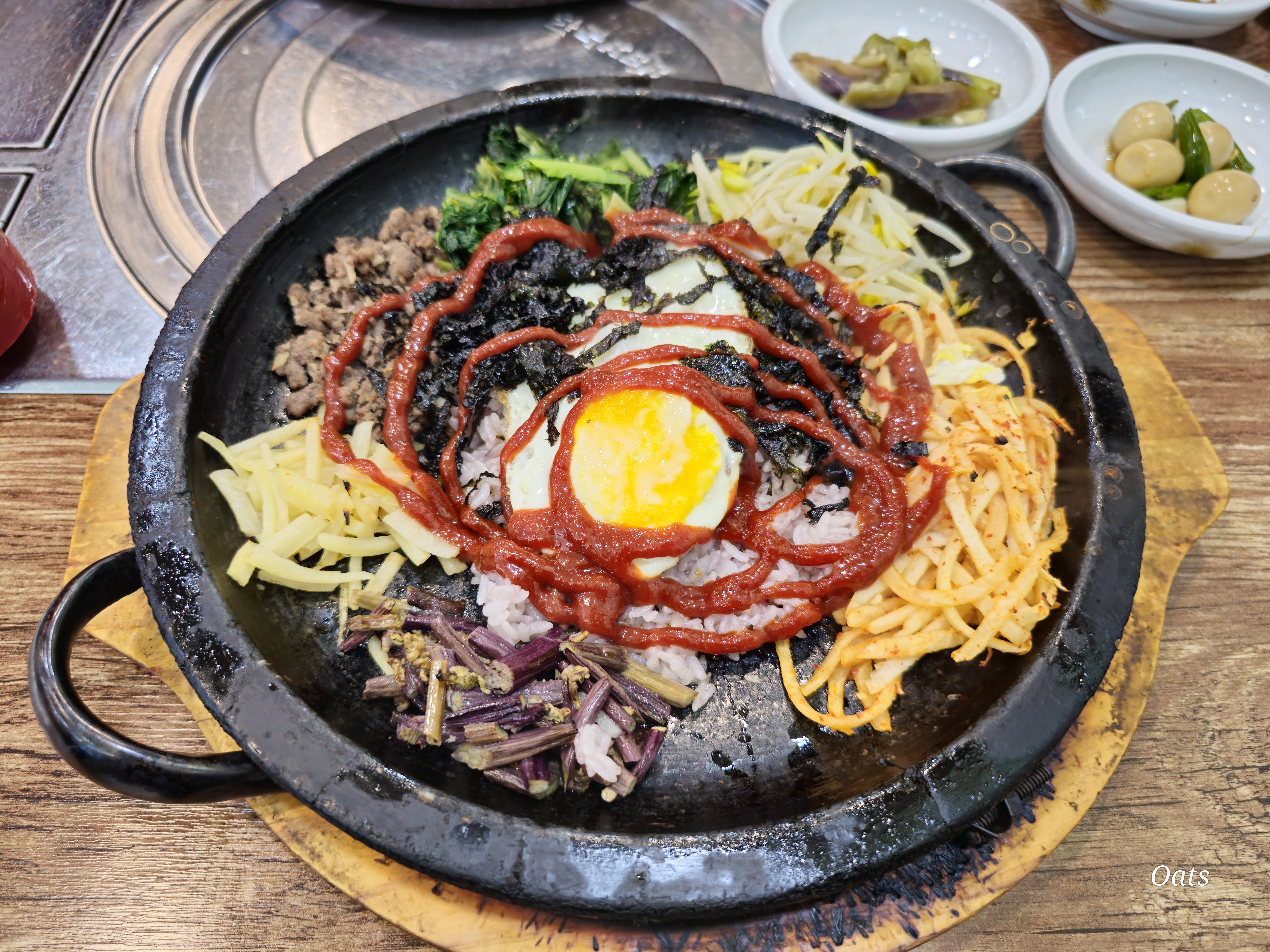 돌판 비빔밥 다른집의 돌솥비빔밥과 같은데.. 다른점은 돌판에 나온다는 점이다.