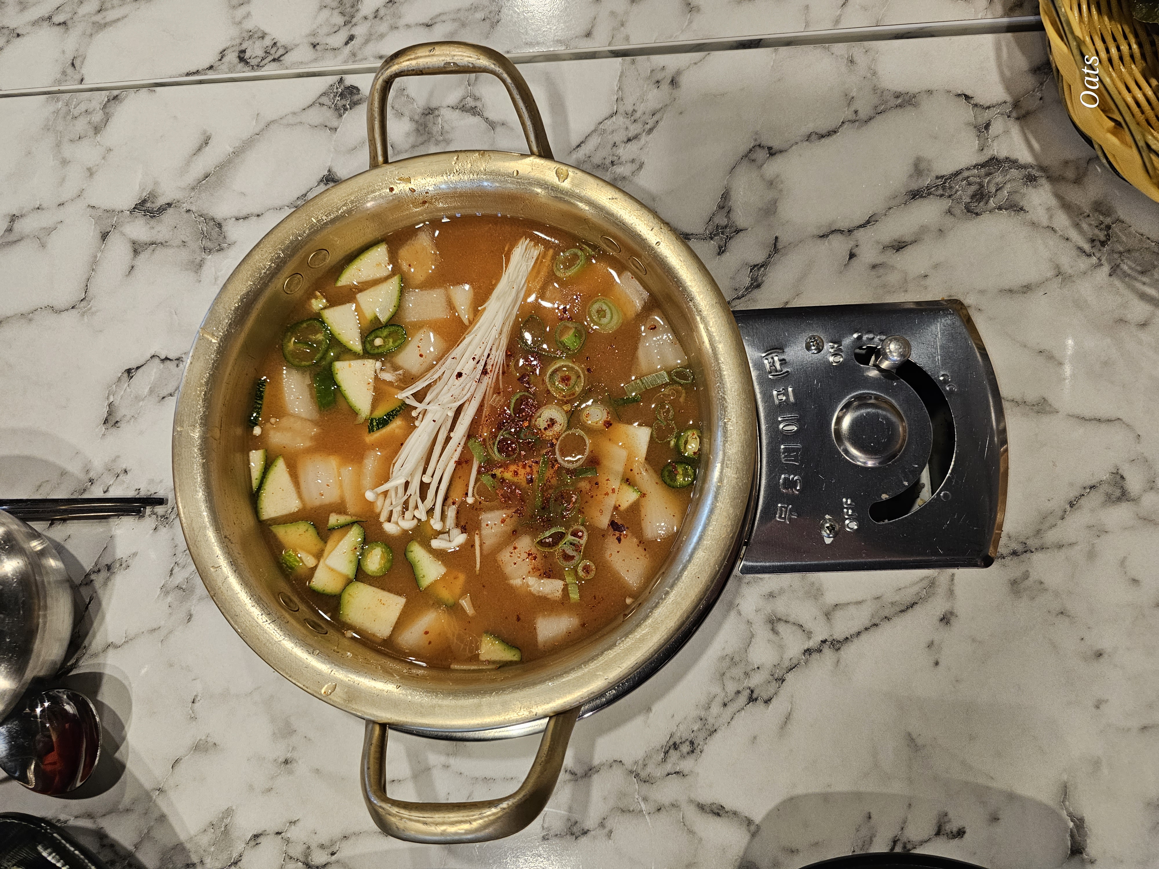 그냥 끓는 모습.. 먹다보면 양이 모지란경우도 있는데.. 반정도 먹고 다시 물 저만큼 채워서 다시 끓이면 맛 변함 없이 맛있게 용량이 늘어 난다 ㅋㅋ