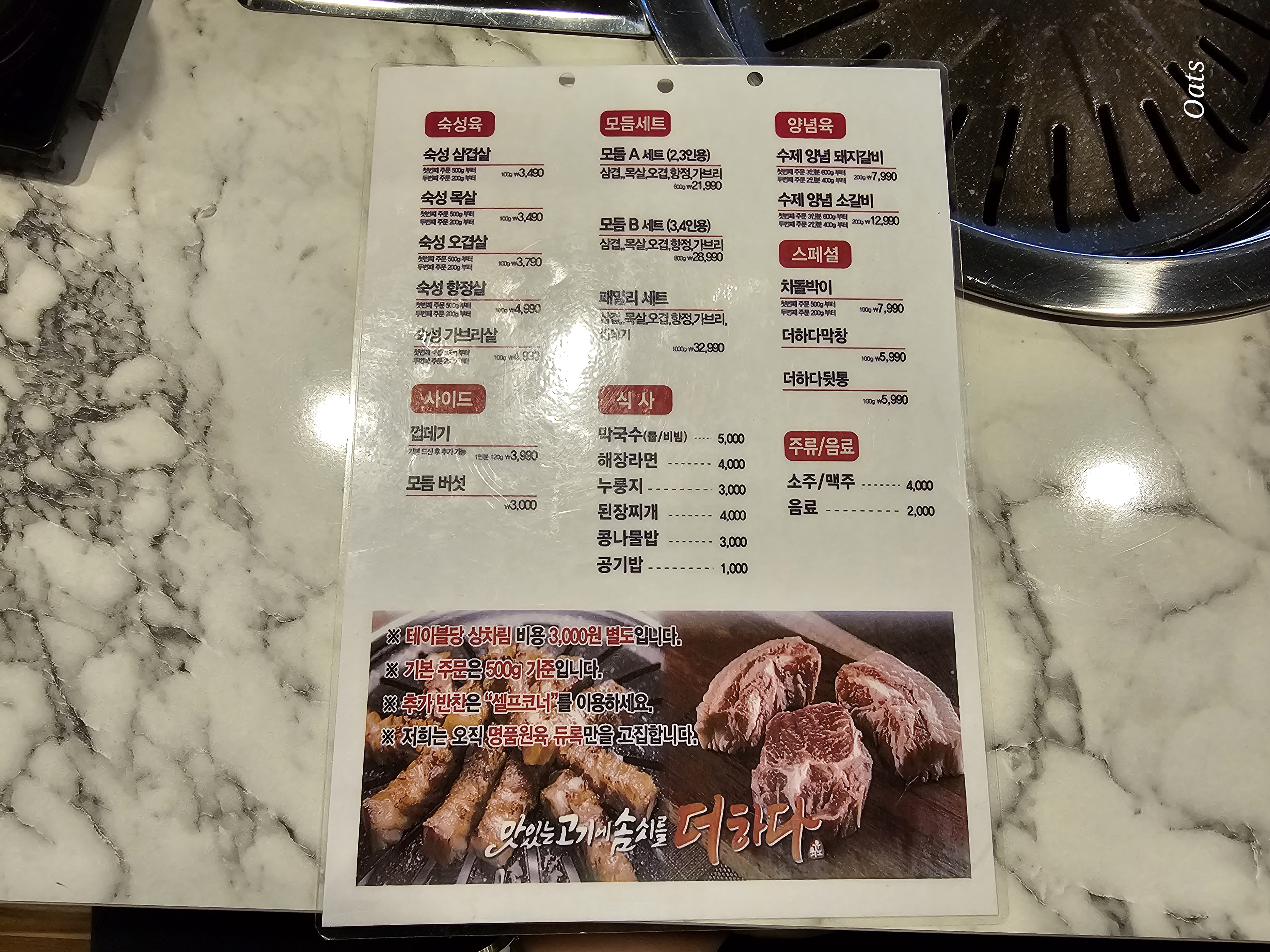고기 먹다 모지란 품목 있음 직접 가져다 먹으면 된다.